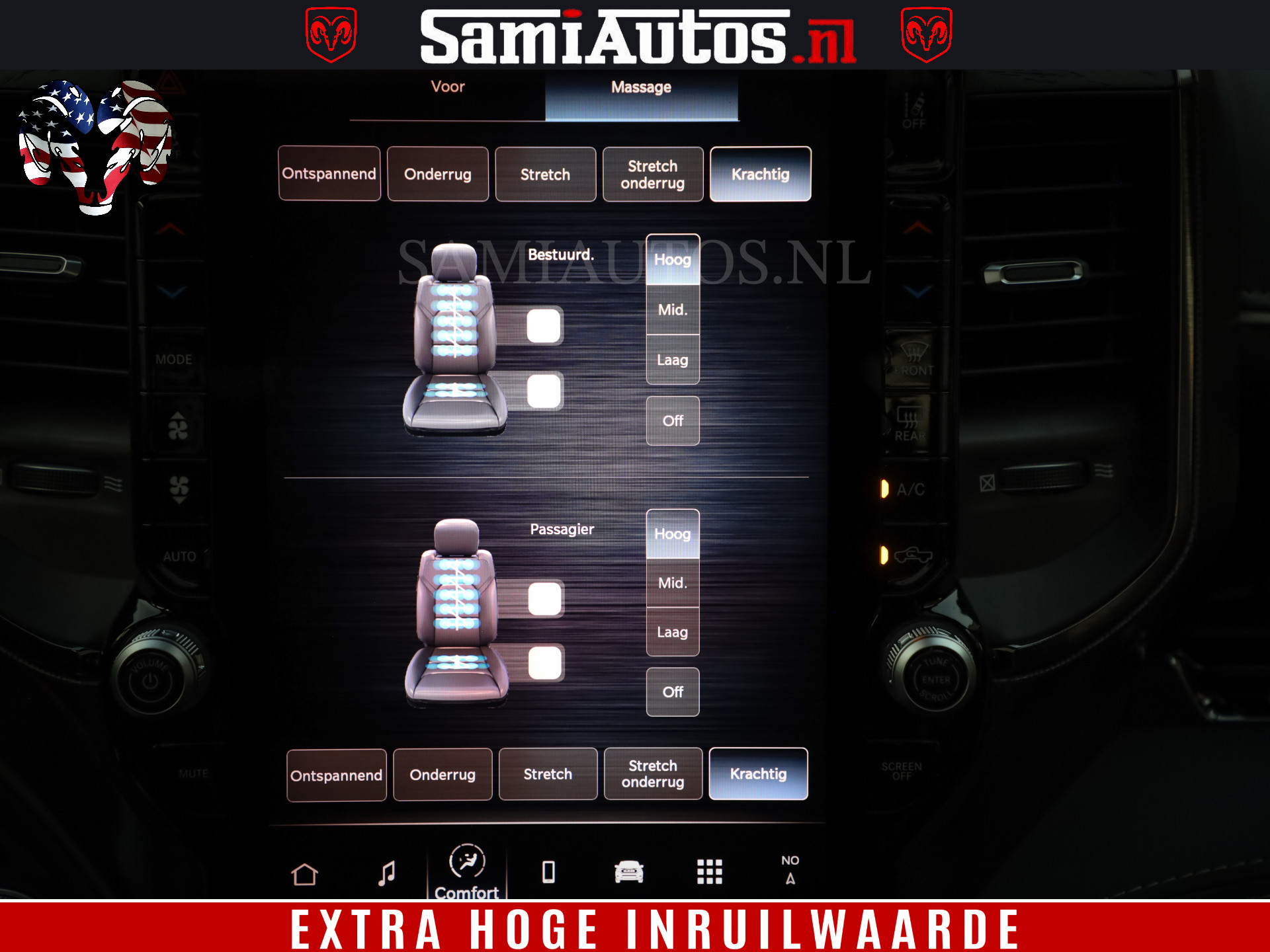 - Massagesysteem: Ervaar ongeëvenaard comfort met massagestoelen voorin