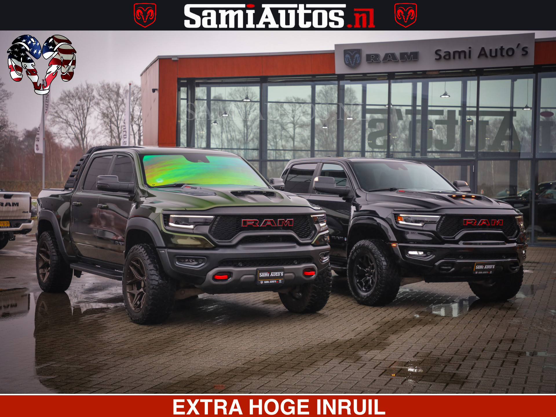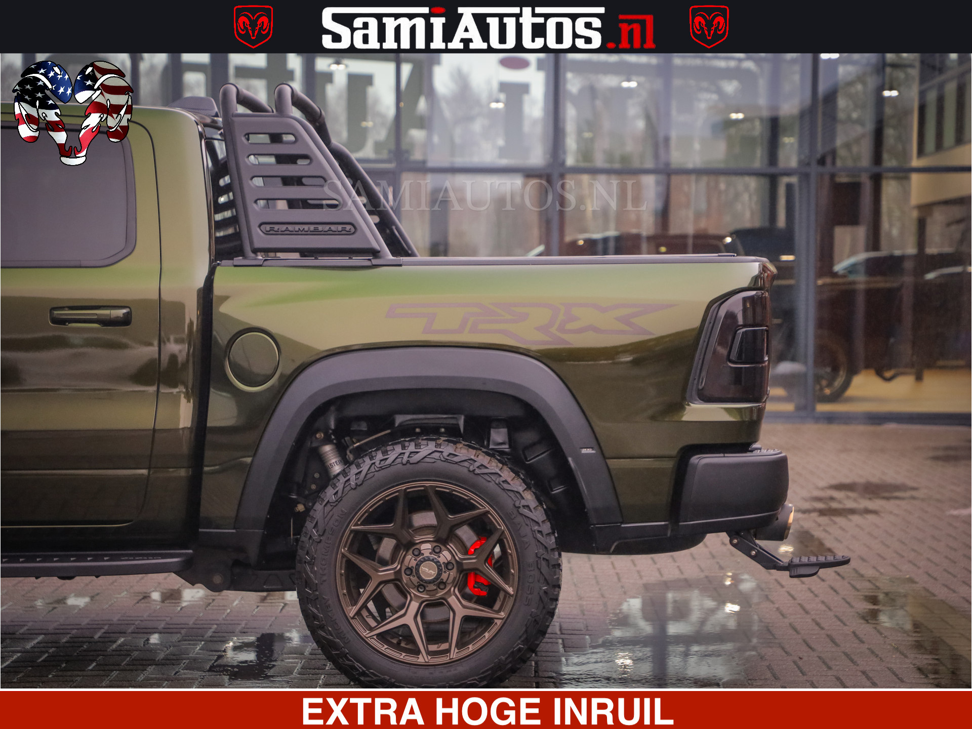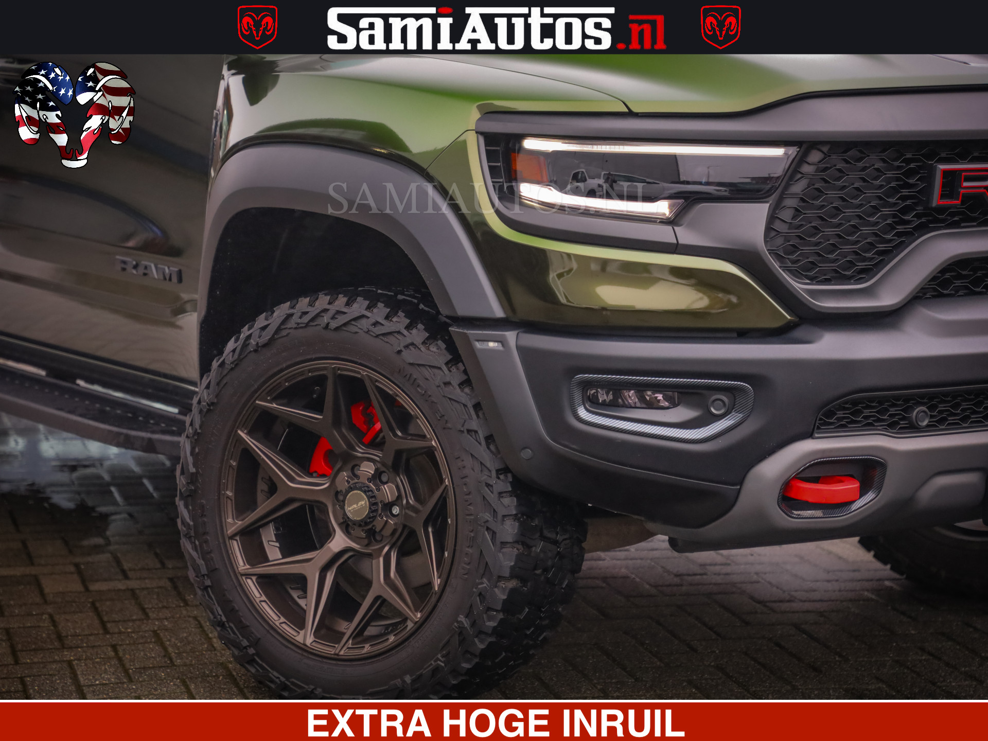 Dodge Ram 1500 TRX OLEA GREEN HELLCAT 6.2 V8 712PK | CARBON PACK | RODE STIKSELS | BOM VOL | 4PLAY WHEELS |
