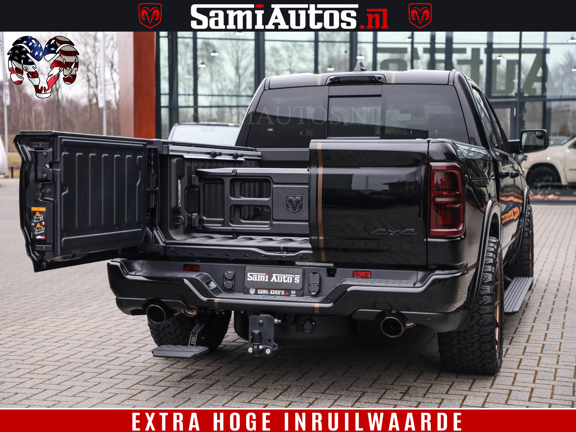 ✔ Prins LPG-installatie ✔ WideBody ✔ Trekhaak ✔ Tonneau cover ✔ Bredere wielen zo afgebeeld ✔ Striping ✔ Tinten ✔ Bedstep ✔ Divider.