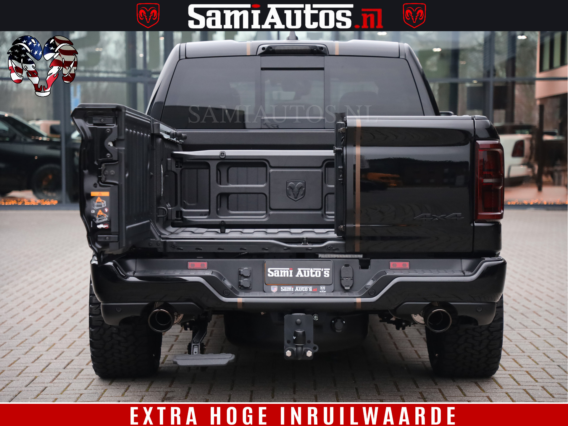 ✔ Prins LPG-installatie ✔ WideBody ✔ Trekhaak ✔ Tonneau cover ✔ Bredere wielen zo afgebeeld ✔ Striping ✔ Tinten ✔ Bedstep ✔ Divider.