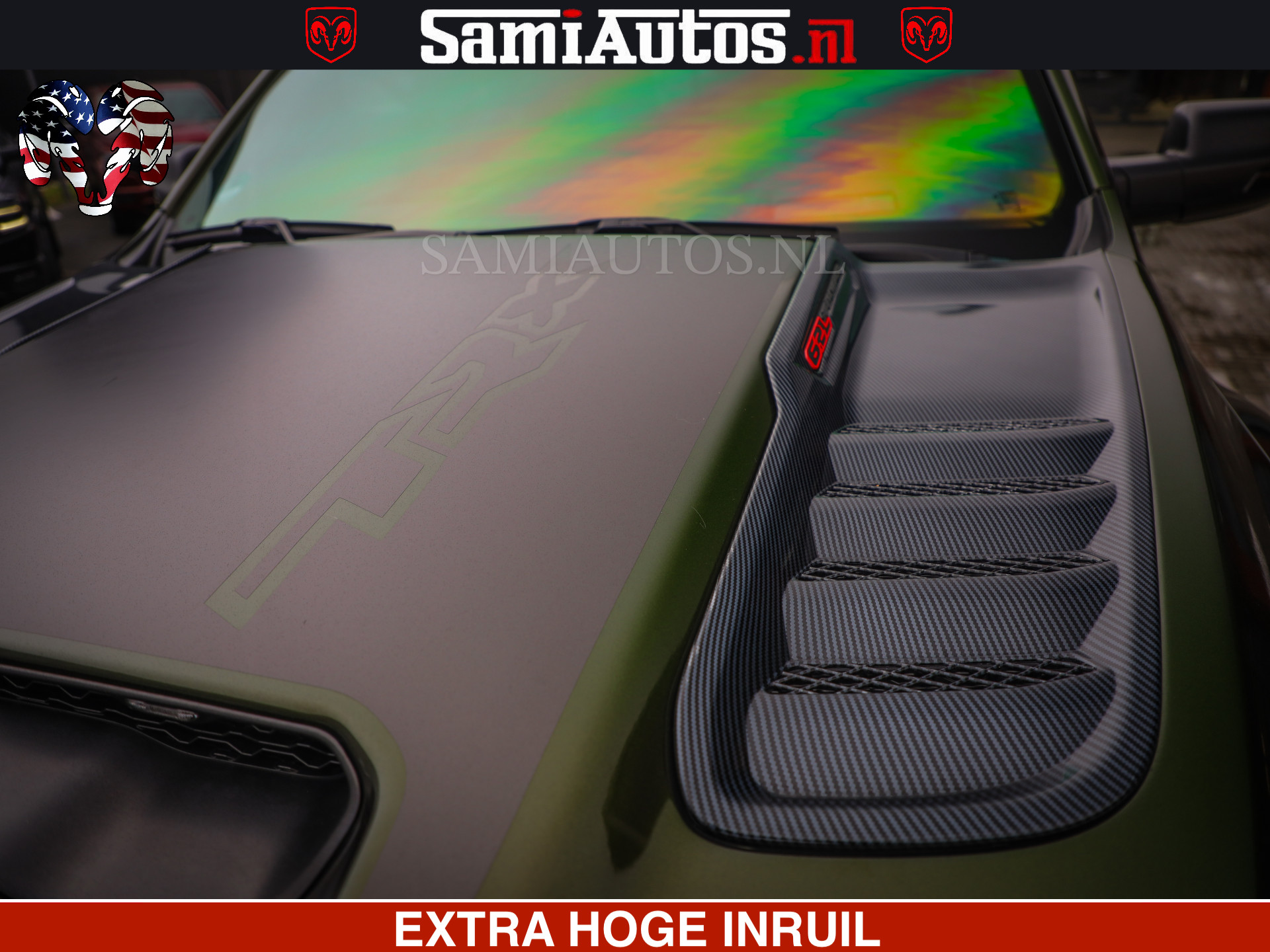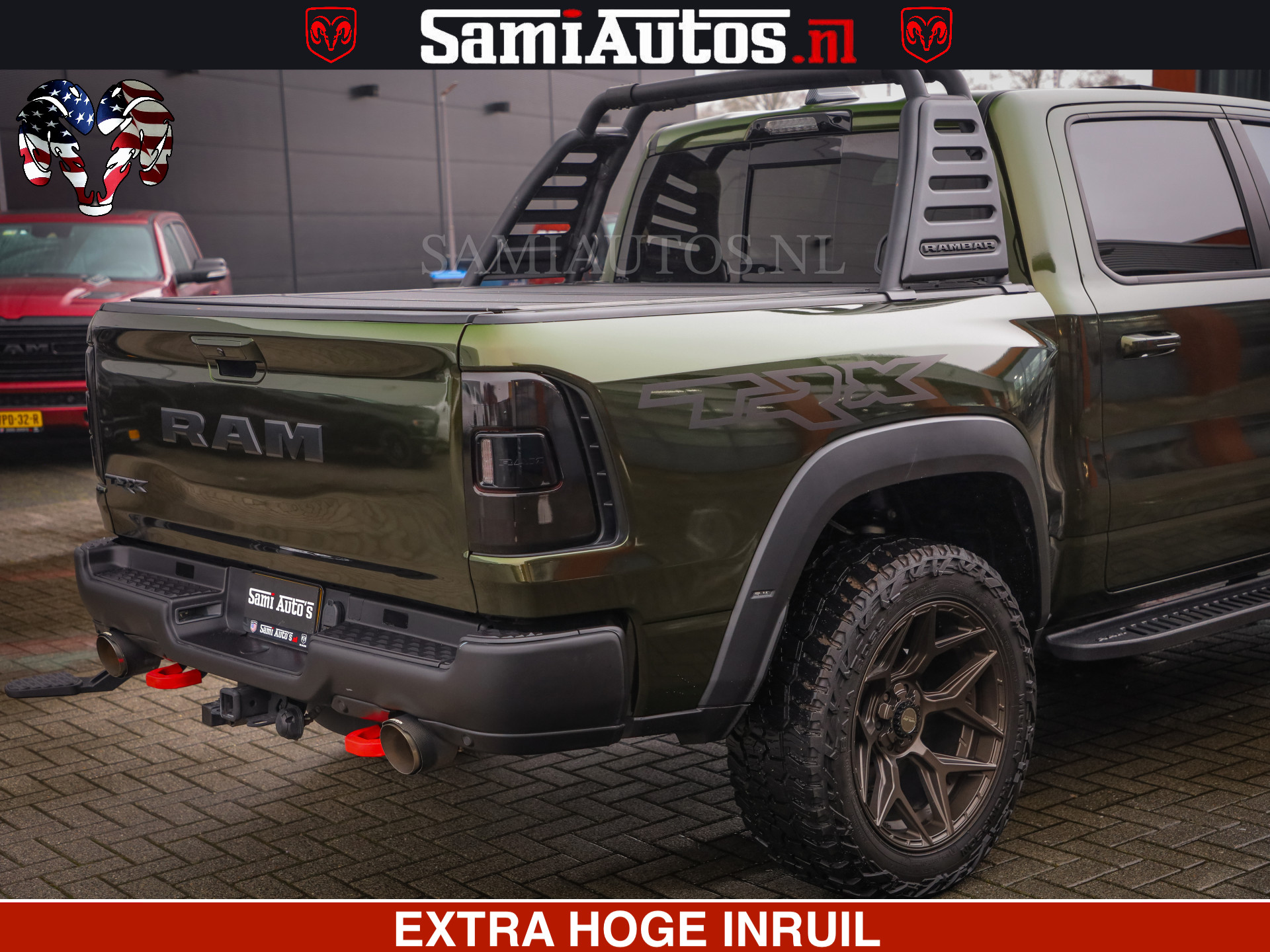 Dodge Ram 1500 TRX OLEA GREEN HELLCAT 6.2 V8 712PK | CARBON PACK | RODE STIKSELS | BOM VOL | 4PLAY WHEELS |