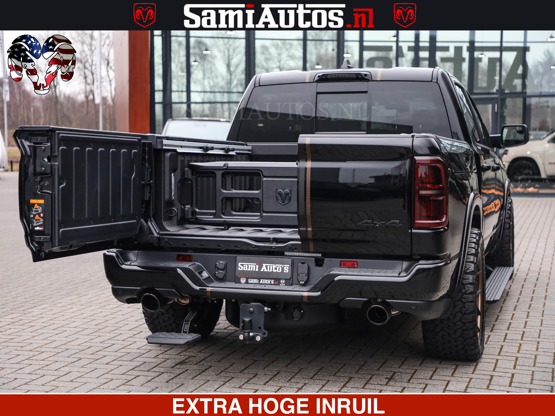 ✔ Prins LPG-installatie ✔ WideBody ✔ Trekhaak ✔ Tonneau cover ✔ Bredere wielen zo afgebeeld ✔ Striping ✔ Tinten ✔ Bedstep ✔ Divider.